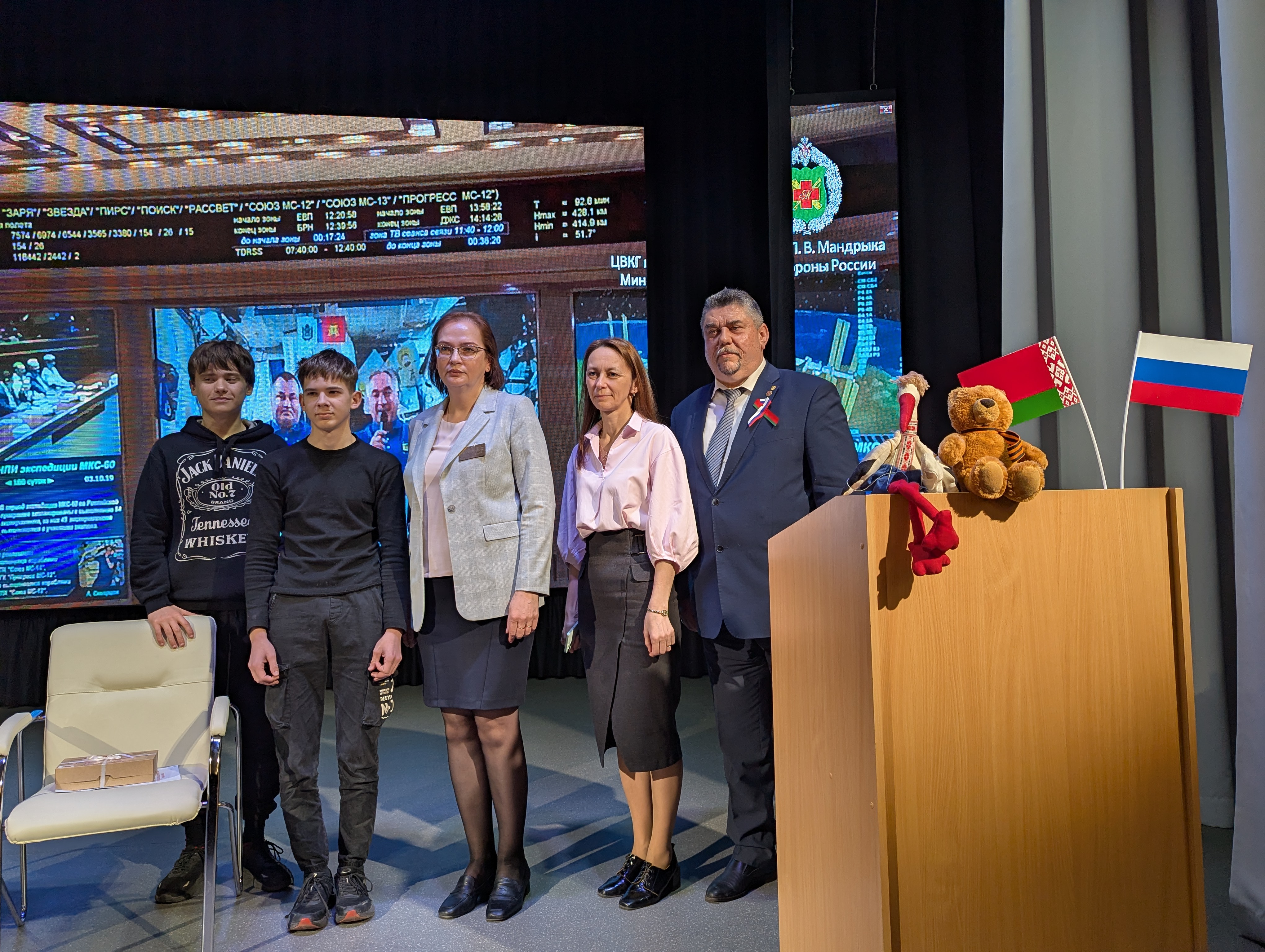 На торжественной части мероприятий, выступление председателя Столбцовского райисполкома Атрушкевича А.М, автора-организатора проекта, конкурса, специалиста Госпиталя им. П.В.Мандрыка Сидорова А.В., представителей Общественного Совета при Минобороны России, видео показ истории космического проекта 2010-2026 г.г., поздравление от представителей Минобороны России, Госкорпорации «Роскосмос», приветствие от Российского экипажа космонавтов Международной космической станции (командира МКС – 74 Героя России Кудь-Сверчкова Сергея Владимировича, Федяева Андрея Валерьевича, Микаева Сергея Николаевича) с проведением экспозиции выставки рисунков -призёров юных граждан России и Беларуси в космосе на борту МКС, встреча с юными гражданами Минской области, участниками программ Российского конкурса детского рисунка «Славные страницы истории братских народов России и Беларуси – Мы вместе».