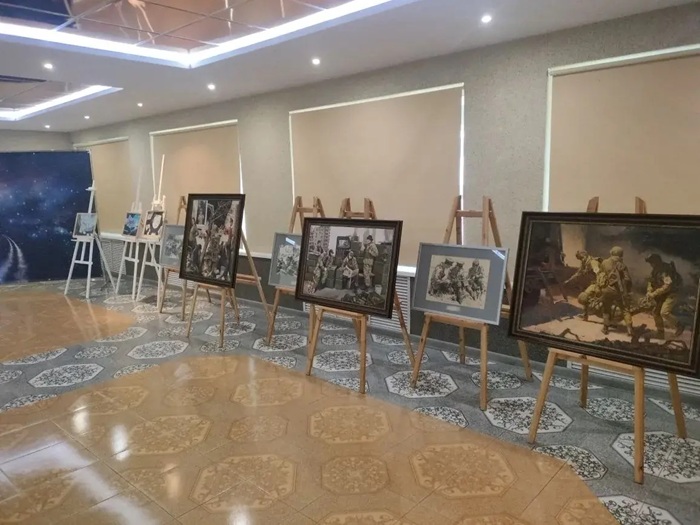 Большая выставочная коллекция картин представляют картин «Студии военных художников им. М.Б.Грекова» Минобороны России, картины художников Минской области, фотокартины рисунков – призёров юных граждан Союзного государства из космоса с Международной космической станции Российского многоэтапного конкурса детского рисунка «Славные страницы истории братских народов России – Беларуси – Мы вместе», организатором которого являются ФКУ «ЦВКГ имени П.В.Мандрыка» Министерства обороны Российской Федерации, Государственная корпорация по космической деятельности «Роскосмос», во взаимодействии с органами военного управления Минобороны России, вместе с рисунками юных граждан Союзного государства в космос на Международную космическую станцию отправлялись флажки России и Беларуси, боевое Знамя госпиталя имени П.В.Мандрыка Министерства обороны Российской Федерации, вымпелы Главного военно-медицинского управления Министерства обороны Российской Федерации, логотипы гербов городов Республики Беларуси, Российской Федерации, которые участвовали в космических выставках на борту Международной космической станции вместе с рисунками детей Союзного государства.