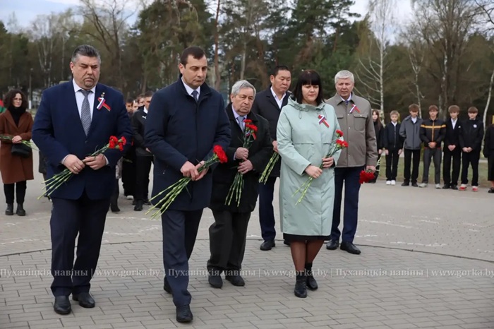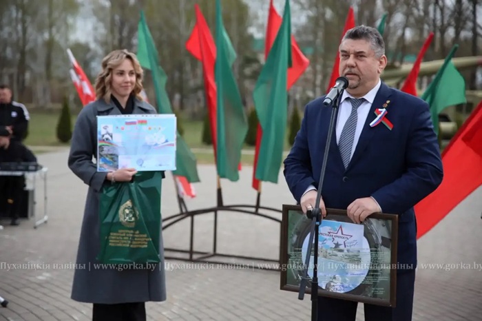 Росийско-Белорусская делегация во главе председателя Пуховичского райисполкома Маевского А.А, актива района, автора – организатора проекта, конкурса, специалиста ФКУ «ЦВКГ им. П.В.Мандрыка» Минобороны России Сидорова А.В, членов Общественного Совета при Минобороны России, командования и личного состава 5 ОБСН ВС Республики Беларусь, жителей Минской области провели митинг и возложили цветы на историко-культурном комплексе «Аллея воинской славы» к памятнику защитников Отечества, Героев Советского Союза и воинских частей Пуховичского гарнизона Минской области.
