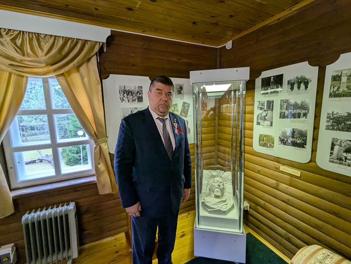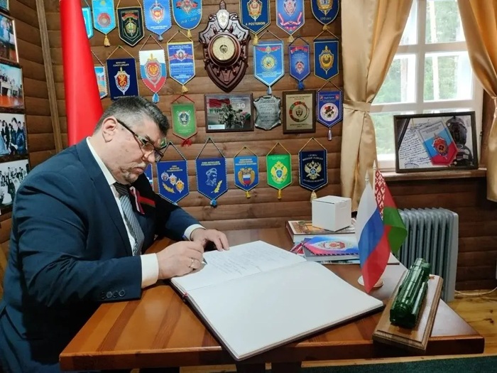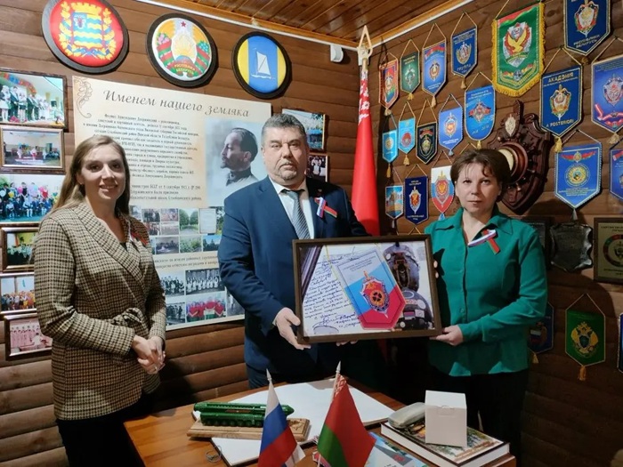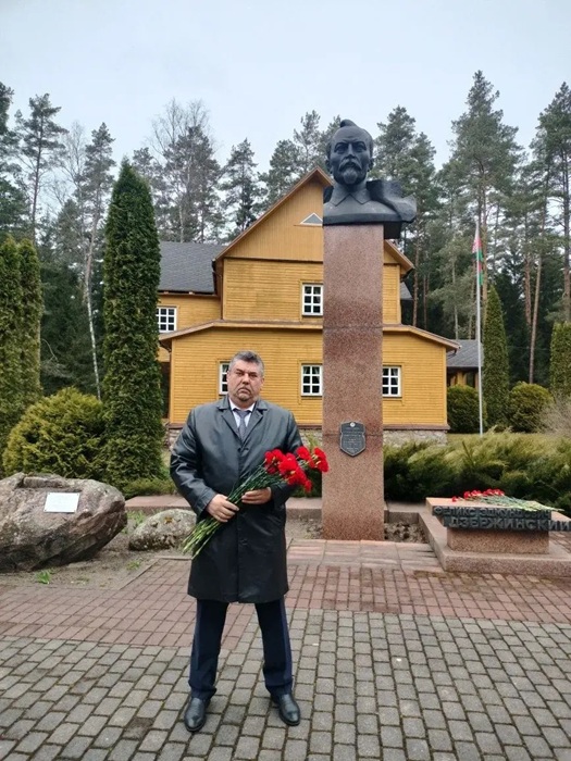 Российско-Белорусская делегация посетила ГУК «Музей-усадьбу «Дзержиново», провела возложение цветов к памятнику основателю ВЧК (ФСБ России) Ф.Э.Дзержинскому, с передачей автором-организатором проекта, конкурса, специалистом ФКУ «ЦВКГ им.П.В.Мандрыка» Минобороны России А.В.Сидорова в канун дня образования Главного управления «СМЕРШ» (19 апреля 1943 г) в музей памятных сувениров от служб ДВКР ФСБ Российской Федерации.